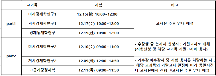 Part2 : 거시경제학연구2(고급거시), 미시경제학연구2(고급미시), 계량경제학연구