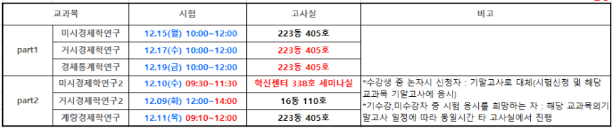 2. 결과발표 : 경제학부 홈페이지 공지사항을 통해 발표 예정(12월 말 예정)