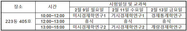 2. 결과발표 : 경제학부 홈페이지 공지사항을 통해 발표 예정(2월 말 예정)
