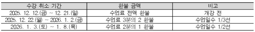 ※ 최종 폐강(수납인원 20명 미만): 2025. 12. 9.(화)